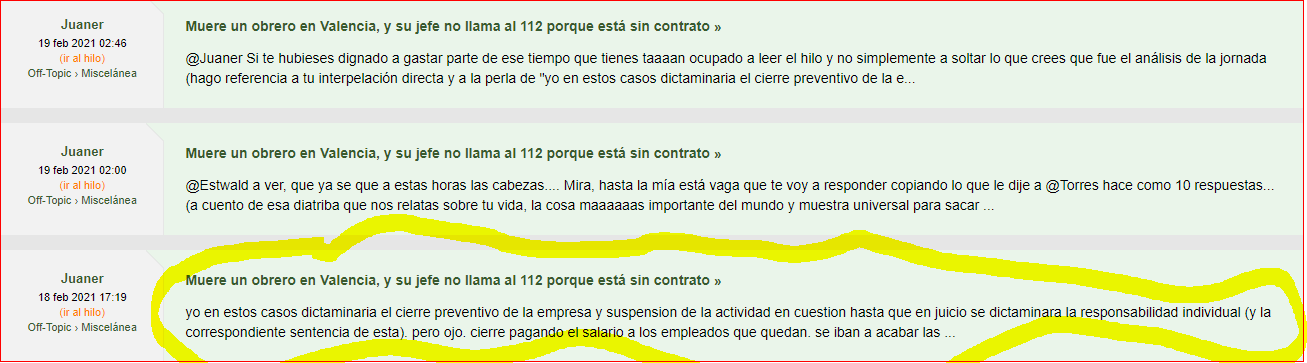Luis14 escribió:@Juaner Si te hubieses dignado a gastar parte de ese tiempo que tienes taaaan ocupado a leer el hilo y no simplemente a soltar lo que crees que fue el análisis de la jornada (hago referencia a tu interpelación directa y a la perla de "yo en estos casos dictaminaria el cierre preventivo de la empresa y suspension [...]"*) ..., estarías enterado de que llevo toda la tarde aguantando faltadas por aquí (en lo personal) pero dime qué te parecen faltas de respeto por mi parte...o mejor díselo a alguien que le importe (el botón de reportar está ahí, dale caña![]()