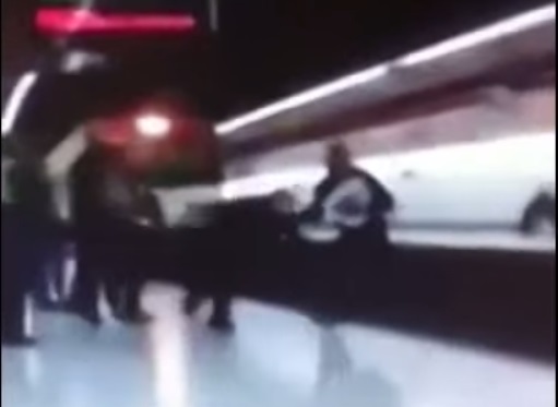 En el vídeo se ve claramente a un individuo de raza negra que se lanza a las vías del tren arrastrando consigo a un individuo de raza blanca.
