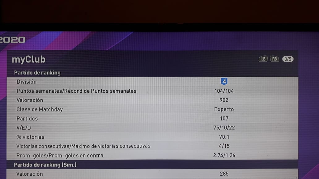 Yo llevo como tres días sacando el Matchday a la primera, con todo ganado. De hecho, llevo dos rachas de cinco victorias seguidas, con un empate y derrota por medio, que tampoco es tan habitual en mí. Total, que otra vez estoy cerca de los 900.