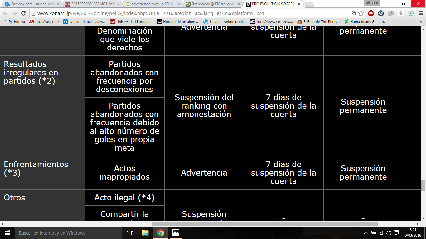 no he parado de hacer el bug del segundo mando, pero sin 5 expuksados, expulsaba 4 , un par de goles y dejaba pasar el partido hasta el final, solo he perdido un partido SIM que Konami me devolvio el bug desconectando servidores, y incluso 3 o 4 veces expulse a 5 y gane sin darme cuenta, no tengo ni aviso, ni nada , y estaba expulsado de los rwnkings desde la otra semana, osea que yo creo que es por desconexiones que te banean.... ya os digo que yo sigo vivo y coleando ( le joda a quien le joda )