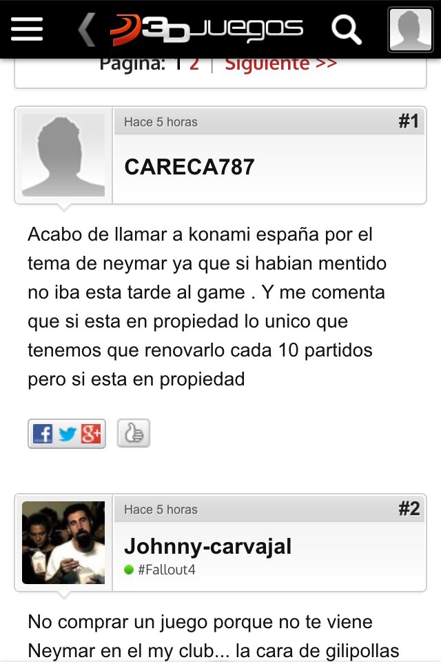 mokiPES escribió:Vengo ahora mismo de recoger mi edicion aniversario en game y en el papelito que viene dentro de la caja del juego donde aparece el codigo para recibir los bonus pone que Neymar es cedido, asi que he ido a la web de game a mirar que ponia y tambien pone que es cedido, cuando yo lo reserve ponia que era fijo y por eso precisamente lo reserve en game, la version mas cara