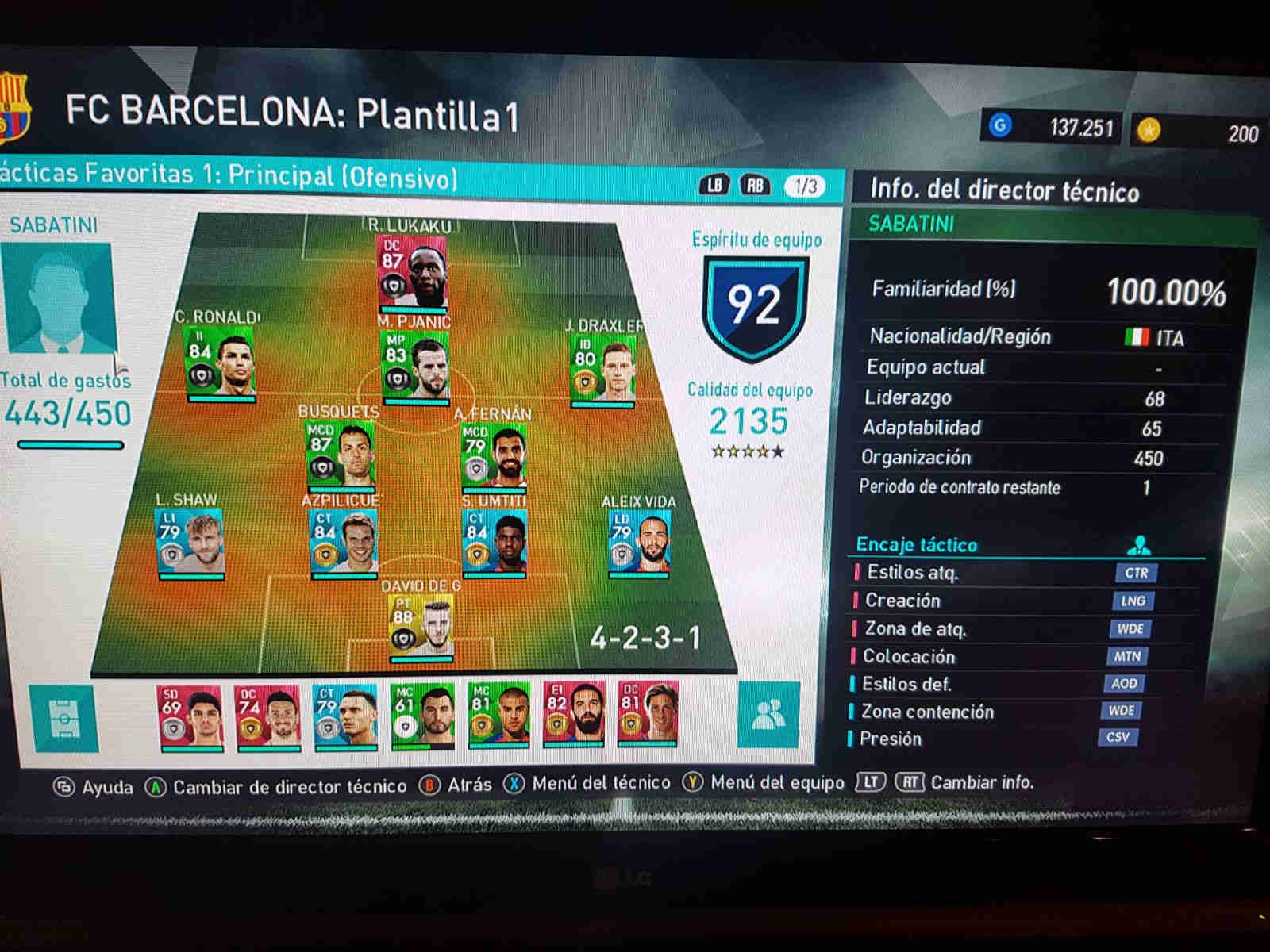 Unido a la desastrosa inteligencia artficial del juego, donde ves jugadores chocarse contigo cuando llevas el balon, jugadores que dejan pasar el balon porque si, pases que van en cualquier dirección menos donde estas apuntando, tener que esperar semanas a tener el entrenador que quieres porque si, porque solo hay unos pocos a la venta y los van rotando como le sale de los cojones a Konami, intento ver lo positivo del juego pero es que cada vez le veo menos...