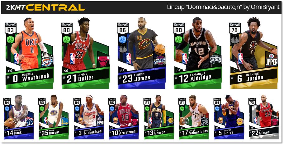Yo como has visto tengo un equipo bastante más modesto. Joder, una clara demostración de ello es que sigo jugando de PF suplente con Taj Gibson (y es que el tio en rebote de ataque y lucha es super competente)