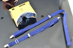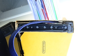 El otro trozo del tirante lo pinzas al anterior justo en el medio, le das la vuelta a la consola y el otro extremo lo pinzas por debajo de la nariz, no roza con la nariz, puedes seguir pasando el dedo para tocar la pantalla por el hueco y logra una sujección.