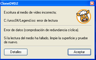 Le he echo ya varios de los ue tiene pero con el Zelda me sale este error al grabarlo con clonedvd.