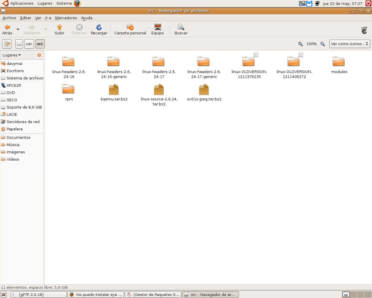sudo rm -r /usr/src/modules/ov51x-jpegDescarga los Drivers desde (http://www.rastageeks.org/downloads/ov51x-jpeg/)