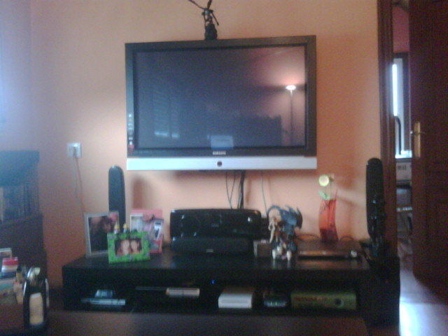 EDIT: El salon, por fin cogiendo forma, aunque aun le faltan bastantes cosas, cuando tenga todo el cableado (me vienen un par de hdmis via amazon uk y alguna cosilla mas) y soportes para todos los altavoces, ademas de adecentar el bajo del central ya recolocare el mueble y resto de cosas.