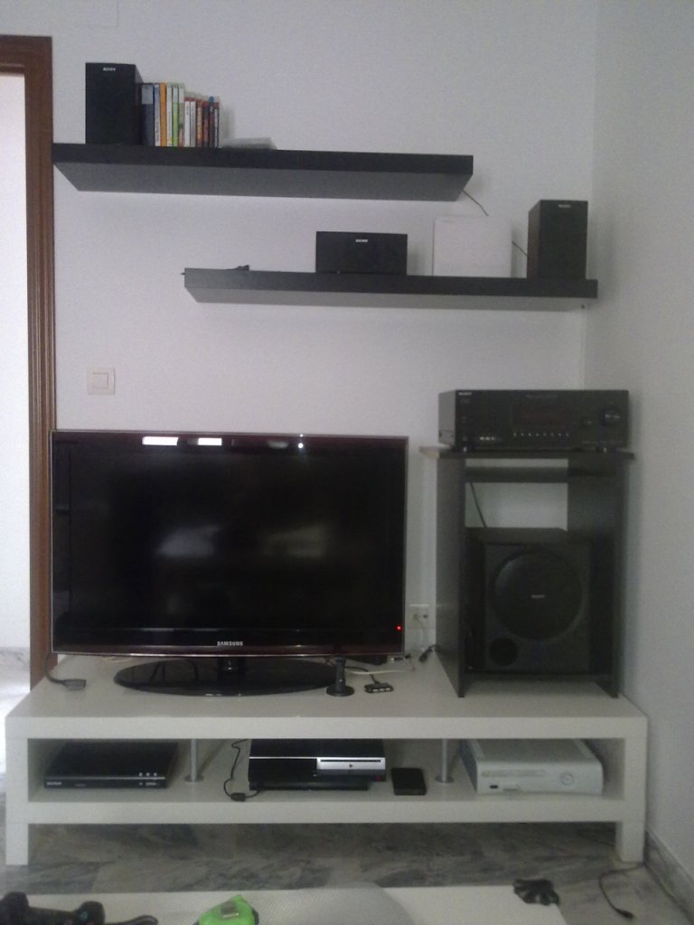 jeje  LordSaddler escribió:Si te entorpece el sonido, otro sitio para poder ponerla sería donde tienes la Xbox; lo suyo es que pusieras un minimueble jeje que haga un poco de juego con la decoración, y pongas en él las dos consolas. Viendo como tienes colocados los marcos de fotos y los estantes encima del mueble de la tele, lo suyo es que este nuevo mueble sobresaliera de la vertical del marco de fotos que le queda encima lo mismo que sobresale el subwoofer de la vertical del otro marco de fotos. En Ikea había unas mesitas para TV de la serie Lack (que te combina con los estantes) en varios colores, entre ellos el negro, que tenía dos repisas, en teoría una era para la tele y otra para colocar "algo" jeje, era como ésta http://www.ikea.com/es/es/catalog/products/00105323 pero mucho más corta y costaba sobre los 25 euros.