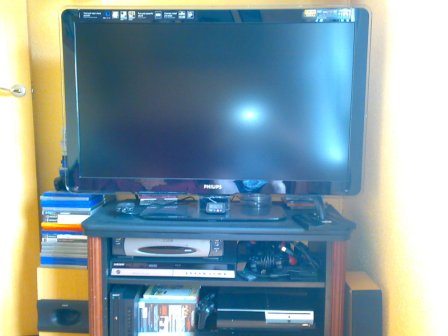 una Wii + Ps3 y una TV Philips LCD 32". A la izquierda un PC antiwillo