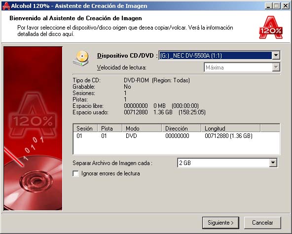 Vaya si tienes suerte...por que si Alcohol 120% comienza a crear la imagen, es que tu DVD drive te está leyendo el GOD, lo que supuestamente es imposible.... [tadoramo]