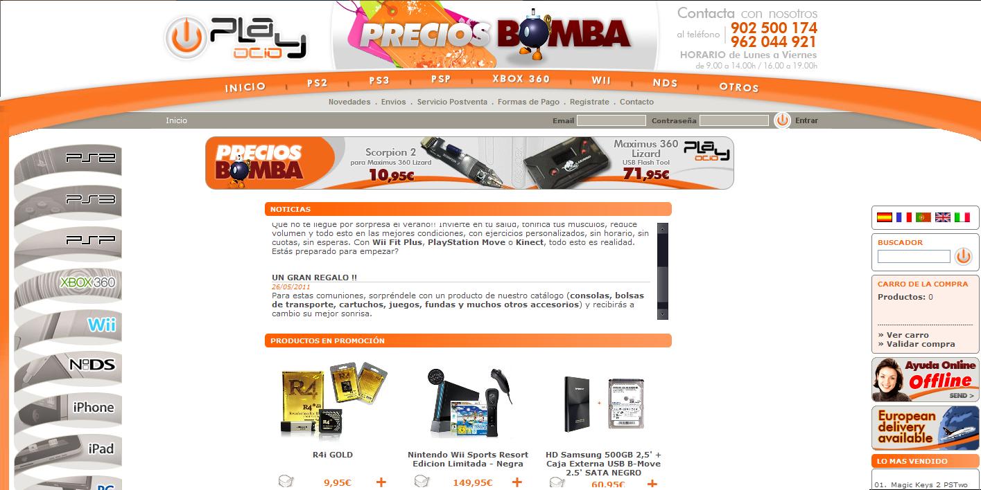 la web esta bien, aunque en estructura , podia lo de ps3 en un subcontenido de ps3, y asi con todos, asi como las imagenes en naranja (psp y consolas de mano) para seleccionar, le quedaria bien si pasando el raton por encima se pusiera en el color de la consola o objeto, y en el resto (ps3 y asi) el naranja le queda lago mal, pondria o un dibujo , boceto de la consola con su color, o una imagen de la consola