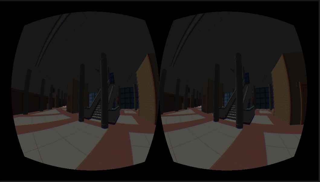 En fin, me pongo las gafas y lo primero que ves delante tuya es una puerta, y joder, ves esa puerta a tamaño natural, tan grande como las puertas de tu casa, y por la que cabes perfectamente con tu cuerpo real. Luego lo primero que hice fue mirar hacia abajo, y primera sorpresa!. Ves una silueta negra gigantesca, como de metro y medio, y claro, el primer susto ya te ha venido. Estúpido!, si es tu sombra ja ja. Y te mueves y la sombra se mueve, y no deja de impactar ver moverse esa silueta increíblemente grande. Por momentos parece mas bien la silueta de un monstruo que tienes detrás de ti, y no la tuya, y no dejas de estar intranquilo, porque como en algún momento me encuentre eso realmente, estoy convencido que del susto no te va a librar ni dios.