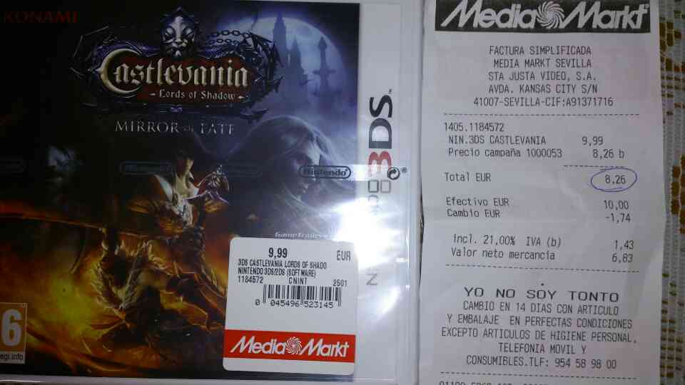 En media markt Sevilla Santa Justa hoy dia sin iva estaba el Castlevania Mirror of Fate a 9'90 y sin iva me ha salido a 8'26 no está mal tambien estaba a ese precio el Art Academy