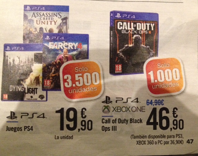 Hoy en carrefour compre dying light y dishonored por 19.90e cada uno.