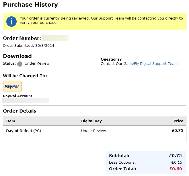 Otro más que se ha agenciado el "day of defeat & co" de Gamefly. Además, como tenía cuenta de otra vez, no te tenido más que hacer login y darle a pagar. Too easy.