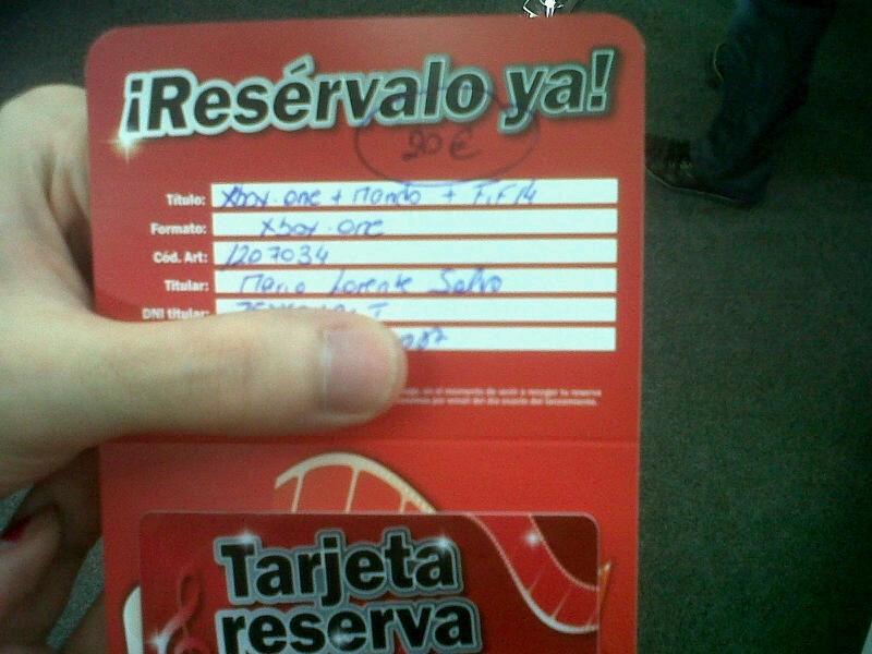 Yo tenia reservada la One en el Corte Ingles de San Chinarro, y el día que la reserve, eran 20€, este fin de semana pasado me pase, y me confirmaron que la edición que tenia reservada era la One Day Edition , que venia con el Fifa14 y que ya no eran 20€ sino 50€, ya de paso reserve un Forza Motorsport 5 y un Dead Rising 3 ambos dos, One Day Edition y me dan por cada uno 10€, así que en total tendré un vale de 70€.Que se ira con un Ryse Jejejeje...