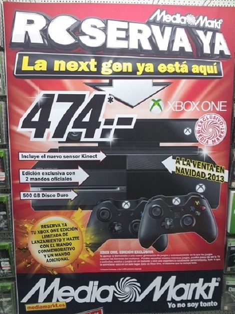 En el Media Markt de Mataró Park he ido hoy, y solamente hay 23 reservas de la Xbox one, le he preguntado que dia salia y me ha dicho el dia 29 de noviembre, la misma fecha que la de la play4, y que ya no aceptan mas reservas con el segundo mando, que ahora es solamente con el fifa 14.