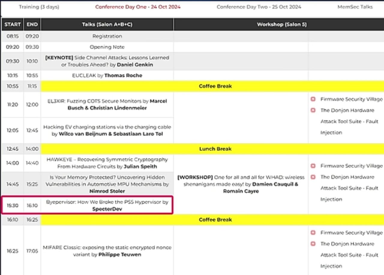 Como bien dice la presentación... esto es para firmwares por debajo o igual a 2.50 , que es cuando el propio hypervisor tenía en el kernel escritas/embebidas ciertas instrucciones (llamadas), entonces con un exploit del kernel podríamos llegar a esto que ha llegado specterdev, al poder acceder al kernel, puede acceder a algunas funciones y/o llamadas del hypervisor e intentar atacarlo de alguna manera (como ha sido el caso).