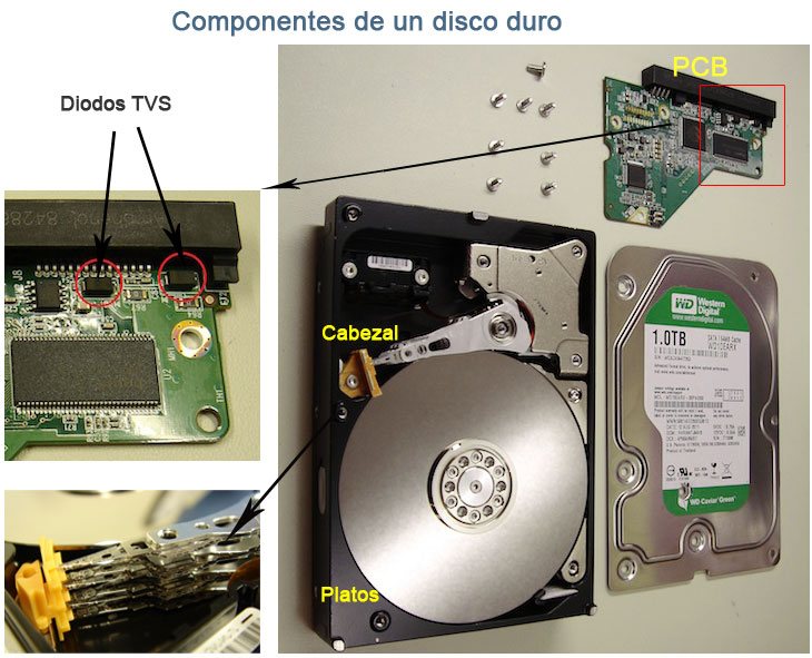 En la siguiente imagen se muestra los principales componentes del disco duro.