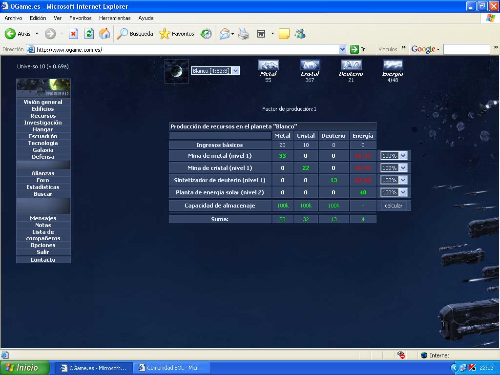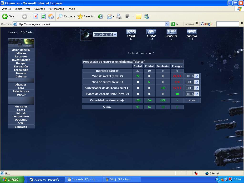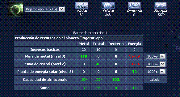 Lo de que los cercanos produzcamos cristales pues es un ejemplo, como nos "sobra" más energía" (a mi me sobran ahora 15 unidades de energía con planta solar lvl 3, hierro lvl 3 y cristales lvl 2) podríamos subir más el nivel de los cristales y dejar más bajo el de Deuterio esperando que nos salga más rentable el cambio a los planetas frios por cristales o metal.