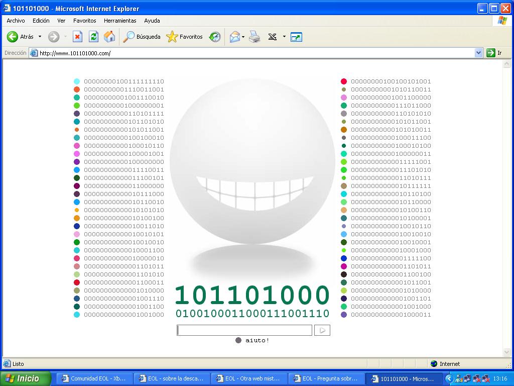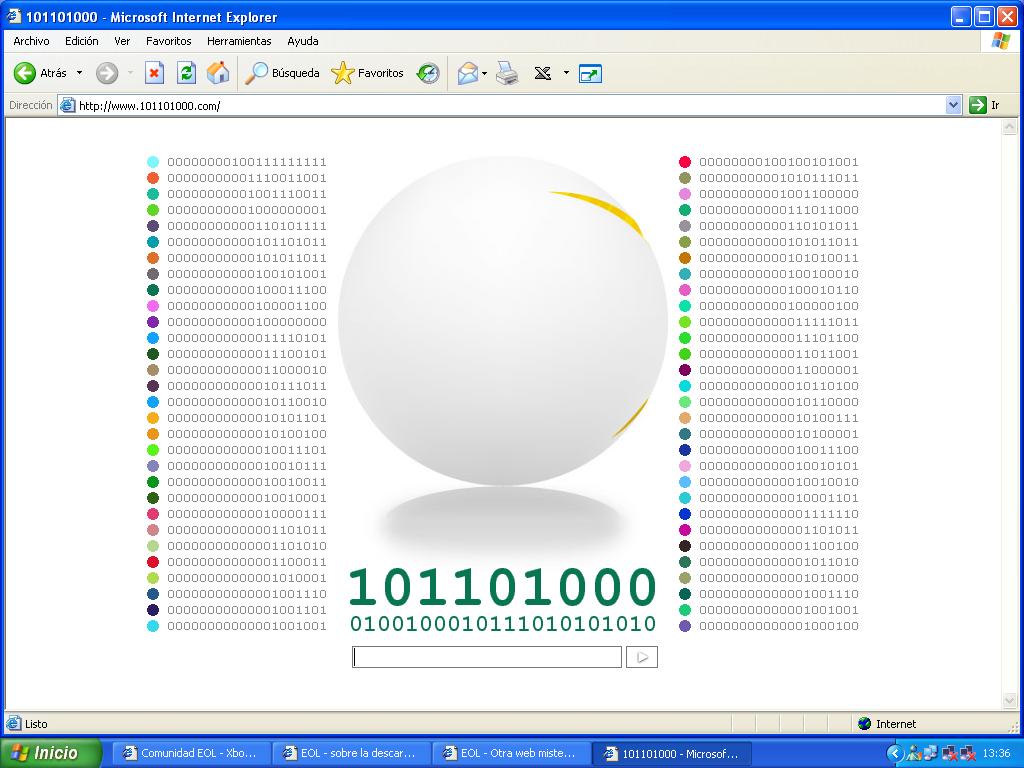 Como ha dicho maxtorete, esto no deja de ser un simple chat, un tanto extraño y freak, pero que en el fondo es un chat. Las columnas de unos y ceros son la gente que hay conectada y si parpadea el color de al lado es que estan hablando con otras personas.