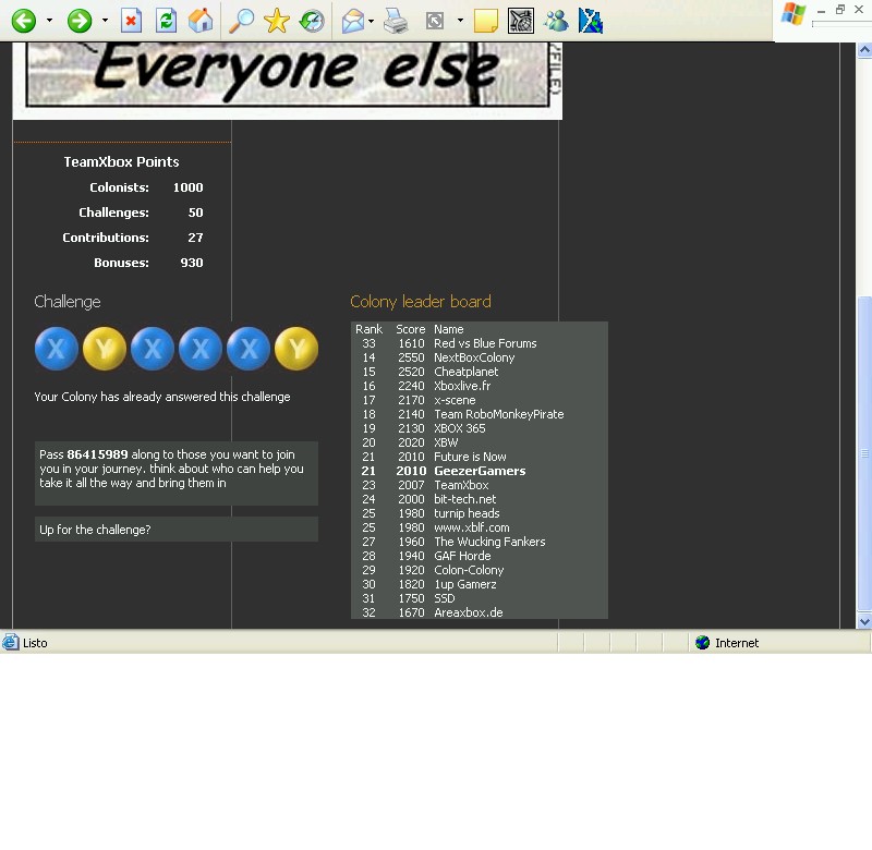 Si a los todos les parece bien, yo creo q con q en la principal pongas cual es el fin de esa colonia (probar a ver si el requisito para avanzar en el juego es q los miembros sean de diferentes nacionalidades), el numero del password, el enlace a la lista de miembros (pag37, aunque esto casi q da igual creo) y q se pongan de nacionalidad una distinta a francia, y si es rara pues mejor.