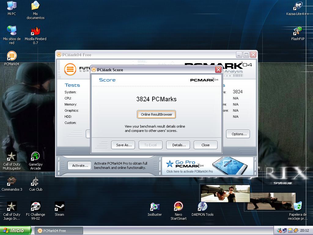 Precisamente a eso me refiero,el pcmarck free te hace unos test bien explicitos en los cuales que tengas una 9800 pro no vale pa nada,osea que los puntos son consecuentes con el rendimiento de los procesos que ahi te dicen,luego no encuentro logica alguna al dar puntos a un componente en concreto puesto que con otro no tan bueno en conjunto deja de ser un supercomponente,osea algo inutil porque si te dice que to ram es un pepino y te costo 200 € logicamente lo tendra que ser otra cosa es que ese peino funcione como un pepino.