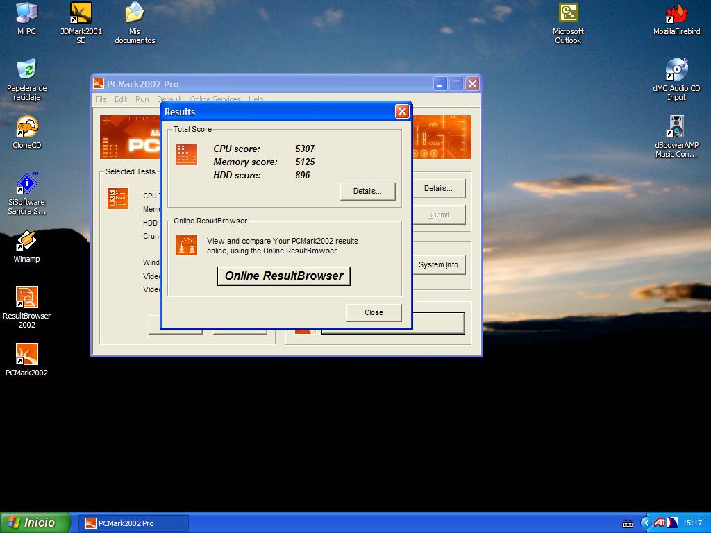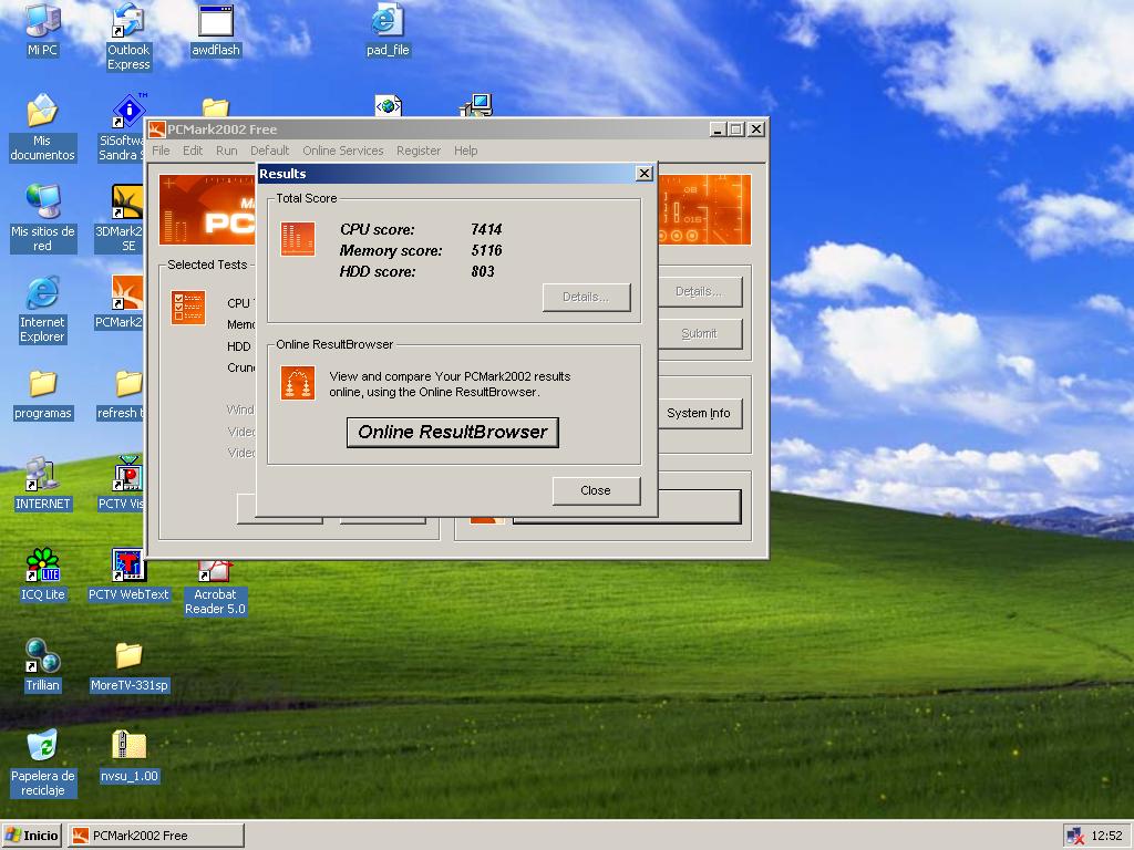 Hace dos dias escribi esto ... hoy solo he cambiado la placa, antes Gigabyte GA-7VA y ahora Abit NF-S v2.0 [amor] e incluso la CPU corre 70Mhz menos y la RAM a 12Mhz menos.
