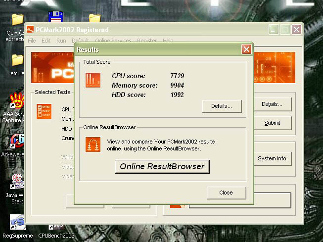 Es increible como ahora con 1837Mhz saca mejor puntuacion q antes con 1902Mhz, el cambio de placa ha sido increible sobre todo si miramos la memoria ... los bancos Dual-DDR de la Abit gestionan bastante mejor la memoria q los bancos DDR de la Gigabyte.