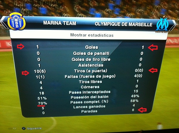 Voy a colgaros una bonita foto, no comento las estadisticas, simplemente fijaos en las flechitas y en el resultado del partido.