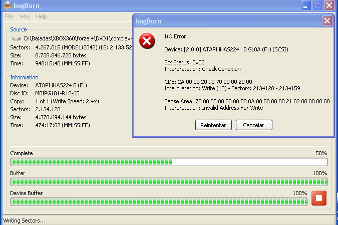 Yo tambien tube problemas al grabar el forza con estos discos, al final lo grabe a la primera con los verbatim MKM 003 normales a x4 con OPC activado