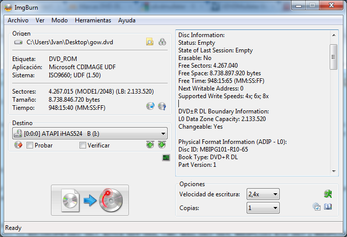 Edit2: Bien después de crosflashear mi lite on de 124 a 224 y ponerle el firm v2 de Takumi, y 3 dvds bajo mi jugo de naranja, logré grabar e instalar al 100% y jugar el gears of war 3, al menos durante el rato que lo probé, unos 10-15 minutos... ( LAS OPCIONES DE IMGBURN FUERON
