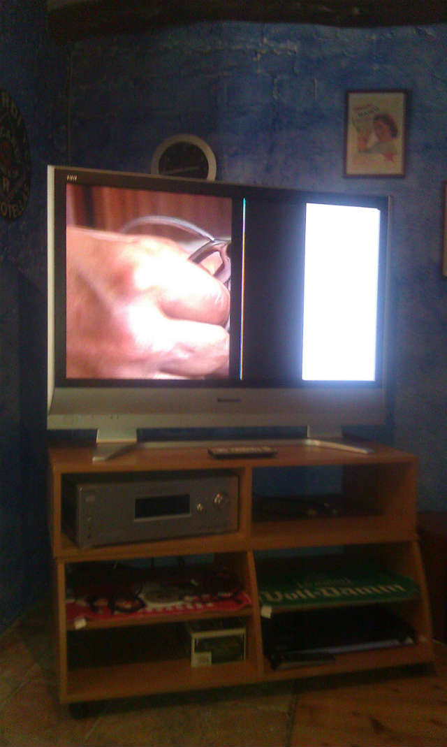 PD.: Estoy pasándole la barra horizontal esa y veo que cuando pasa la barra por el panel parece como si estubiera manchado, se ven como sombras que parece manchado, a parte de que siempre que he puesto un blanco en el plasma siempre lo he visto como un blanco sucio.
