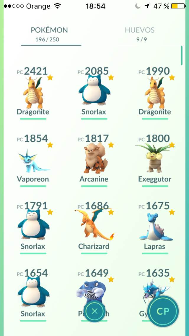 PD: Dispongo de 33 caramelos Snorlax, gracias a que casi la totalidad de ellos fueron adquiridos en un huevo de 10 km.