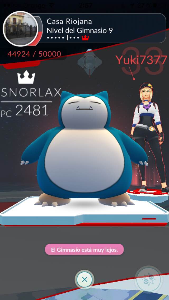 , finalmente y viendo a mi perro mirarme con cara de llevame a casa cabrón que me voy a quedar tieso, acepte mi fracaso con snorlax y renuncie a él, pero no fue así, aunque yo renunciase a él, el gordito no hizo lo mismo, llegue al portal y ahí estaba el ceboso, con su 42 de cp, valiente cagón, yo dando vueltas como un desgraciado y el tan tranquilamente esperando en casa...