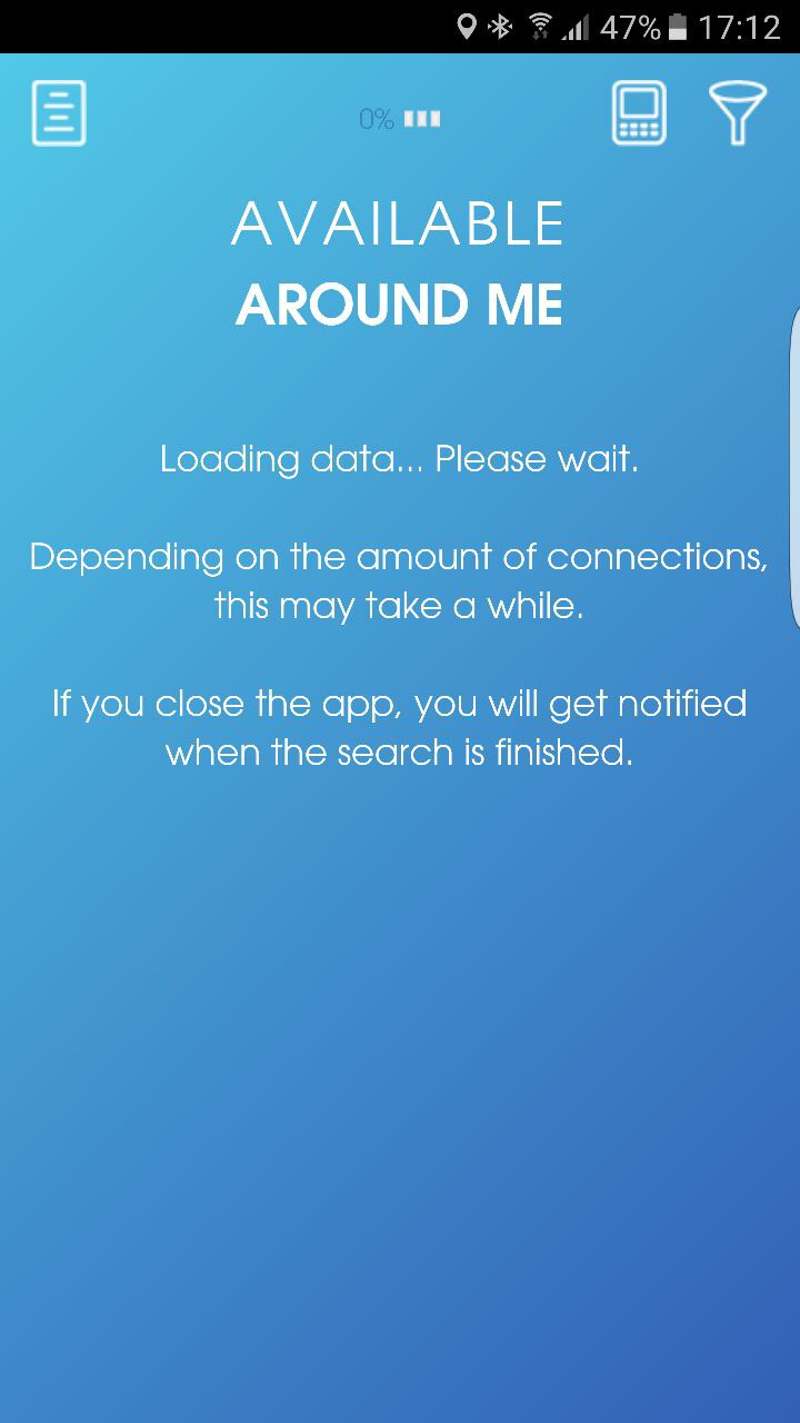 @coleridgeturner supuestamente está haciendo la busqueda si no tienes datos.. O buena cobertura.. Quizas este rayao.. Cierra y abre la app..