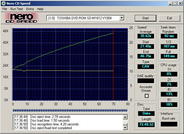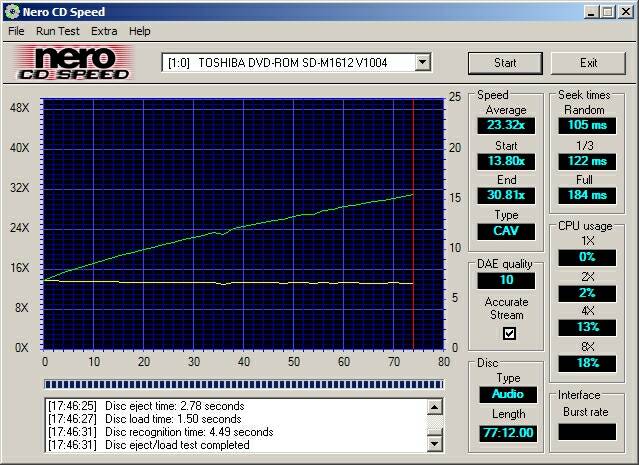 y aqui la prueba del mismo lector (TOSHIBA SD-M1612) pero con un cd de audio: