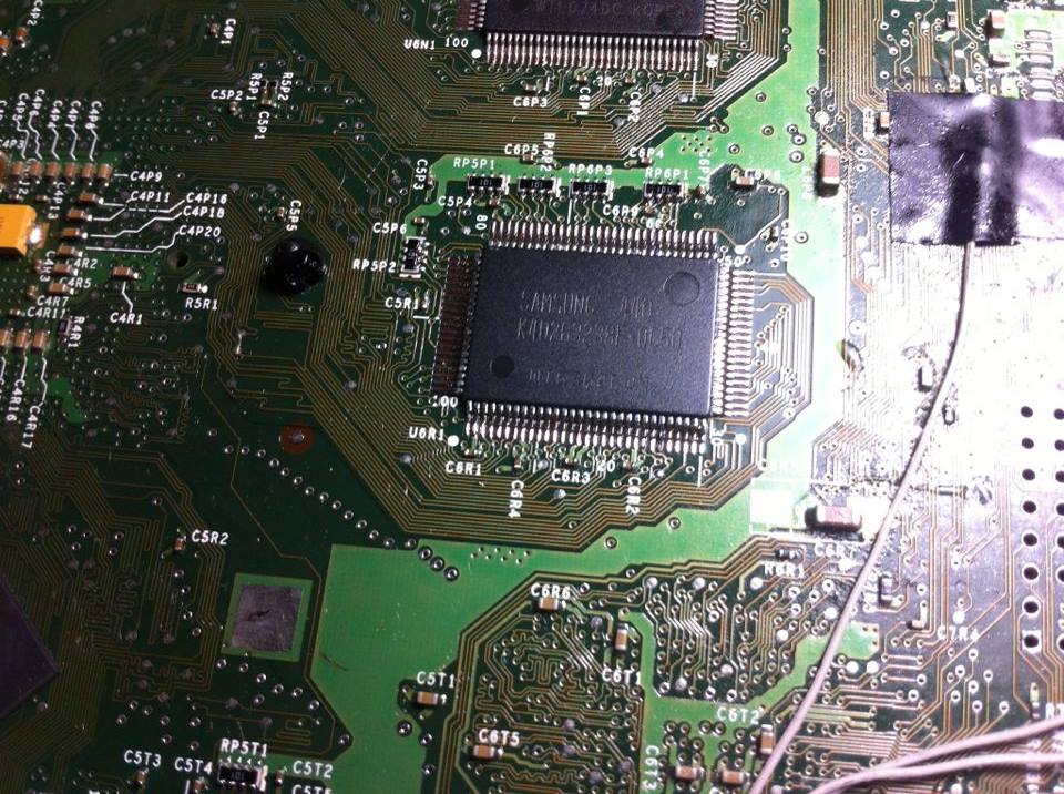 Entonces algo muy importante en este procedimiento que no se menciona es que hay que remover el clear o resina que trae de fabrica la placa en los espacios donde va montada la ram tambien remover un poco el estaño que trae de fabrica la placa, con una lima pequeñita se puede remover el clear y con malla desoldadora se puede remover el exceso de estaño, yo en lo personal utilize un pedazito de lija extremadamente fina para remover la resina de la placa y bajarle un poco el exceso con eso fue suficiente, esto para que cuando instales las rams no vas a tener problemas de puentes entre las patillas,tampoco problemas para alinearla ni para soldar,utilize un cautin o soldador con punta fina de 15 watts y aplicar poco de flux con el dedo en los espacios donde va a ser montada las ram no con palillos de algodon ya que estos dejan fibras y crean cortos, bien importante no utilize estaño zero estaño para soldar en los espacios donde van las rams hay suficiente en la placa,orientar la ram ya que esta lleva una alineacion orientacion el punto blanco en la placa va con el punto pequeño de la ram soldar una pata de una esquina primero luego la otra esquina para fijar alinear y luego soldar cada una de las patillas cuando termine limpiar todos los excesos de flux con alcohol y una esponja suave cuando termine de montar la primera ram dejar que se seque por completo verificar con una lupa o magnificador conectas la placa asi mismo con la primera ram montada enciendes la consola dara dos intentos de encender y luz roja-naranja esto esta bien y indica que no hay problemas si te sale luz roja y verde buscar que debe de haber un puente,para quitar puentes usa mucho flux y el cautin nada mas entre patillas,entonces asi sucesivamente hacer lo mismo con las 4 rams cada vez que montes una limpias dejar que se seque inspeccion bajo lupa con calma y conectar placa y probar hasta que en la ultima si todo va correcto veras la pantalla del bios de inicio normal