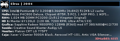 Memoria: 512 DDR@ 400mhz Kingston cl2-2-2-2-3