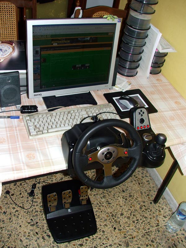 Al principio empece con un Thrustmaster, y la verdad que por 50€ que em costo, y con FFB y todo, pues muy bien, pero claro, cuando quise mejorar por internet en el Live for Speed y el Rfactor, el volante me limito mucho...