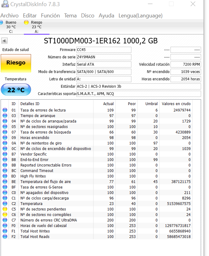 Me extraña mucho ese estado de riesgo, el disco duro tiene 3 años... Es algo reversible?