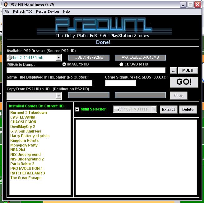 vereis tengo un problemon bastante serio... y es k cuando voy a sakar los juegos del hd de la ps2 al pc, solo me deja elejir la particion C, k casualidad es la k mas poko espacio tengo y no puedo sakar nada de nada... como puedo cambiarle el disco duro o particion a la k extraiga los juegos?? os adjunto una captura.