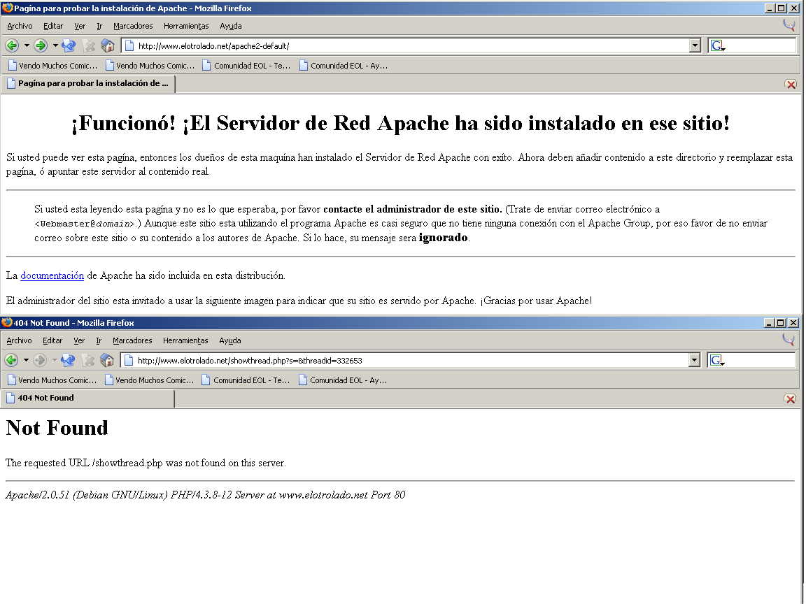 Apache/2.0.51 (Debian GNU/Linux) PHP/4.3.8-12 Server at http://www.elotrolado.net Port 80