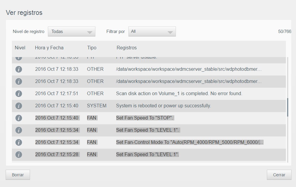 Se me ha ocurrido mirar en registros. Y esto sale a la hora de encenderlo... Pone que se para a las 12:15. Pero en PRUEBA DEL SISTEMA aparece tambien todo OK.