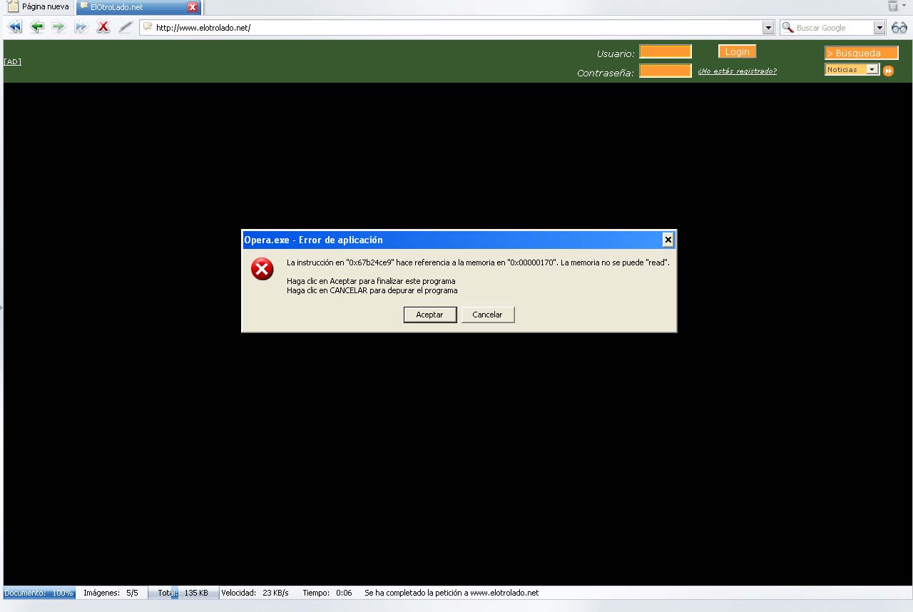 Y al principio ningún problema (pensad que no lo uso mucho). Y ayer prové a meterme en EOL, y me da un error, yo diría cuando carga la varita con la contraseña, pero no estoy seguro. He estado mirando otras webs, con contraseña (gmail) o sin ella meris.. y no me da errores.