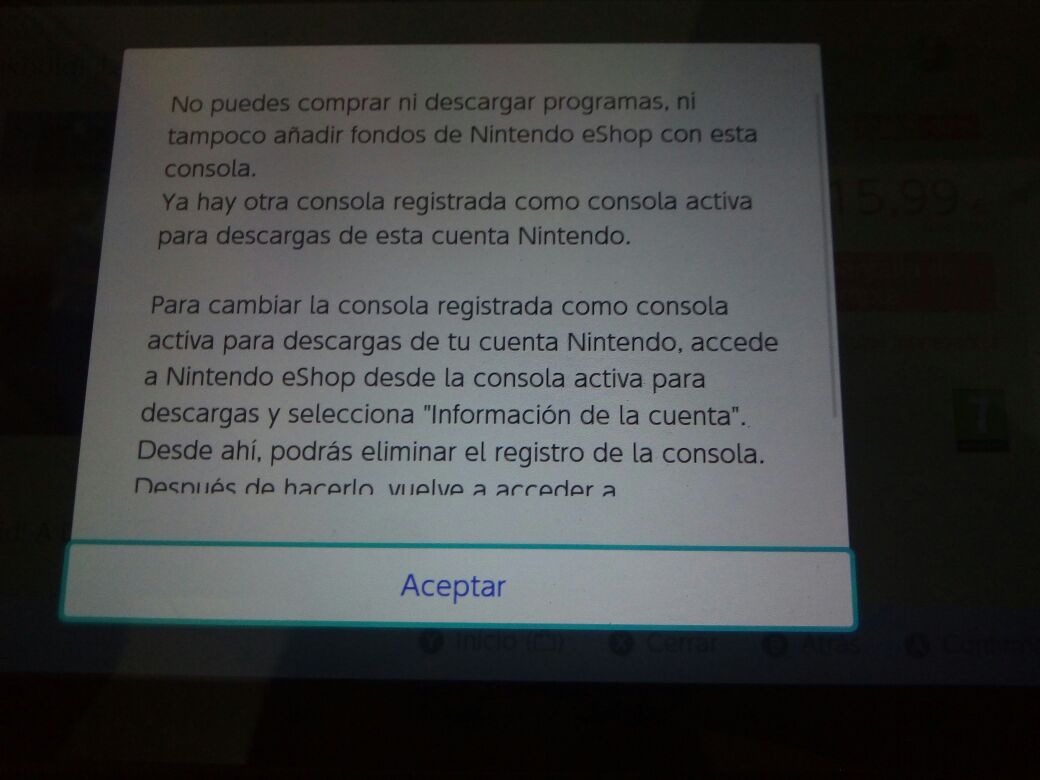 ) el problema fue que no había desvinculado las cuentas, hable con el encargado para hacerlo pero no me dejo me dijo "cuando la llevemos al servicio técnico se formateara y podrás usar tus cuentas con normalidad" Pero.. ya pasaron 5 días y cada vez que uso las cuentas para descargar una demo me salta el siguiente mensaje (adjunto foto). Investigue por mi cuenta y hay usuarios que llegaron a comunicarse con nintendo y soluciono el problema mis dudas son: