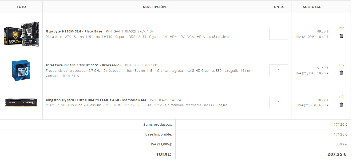 unairevi escribió:@carlosdeoz Y cuantos gigas de ram? los 4 que te decían algunos yo creo que son muy insuficientes para ese procesador. En cuanto arranques el sistema ya te lo has comido. La verdad para el uso de hacer unos cuantos trabajo, mirar facebook y 4 chorradas más (me aventuro a que ese será el uso) un 6500 va de sobra para varios años. Incluso me atrevería a decir que es "demasiado" procesador.