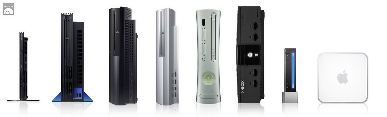 Hola a todos. Curiosamente me tope con esta fotografia en el post oficial de Wii en el que hacen comparaciones de los diferentes tamaños de las videoconsolas y hay una cosa muy graciosa. En primer lugar (de derecha a izquierda)nos encontramos a la PsTwo, en el segundo la Ps2, en el tercero la tan deseada PS3(supongo que sea el modelo de 20 gigas por su único color negro) y en el cuarto lugar...¿Qué es lo que nos encontramos? Da la impresion de que sea una Ps3 rebajada de peso o sin tripas. O como su recien llegada Wii con la fuente de alimentacion externa. Quien sepa que és que levante la mano. Gracias