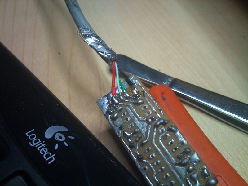 en kuanto a las konexiones usb... he medido continuidad entre los conectores del usb y lso cables pelados, para saber ke kolor korrespondia a cada pin, y luego los e soldado, segun creo yo,donde deberian ir con respecto a lso conectores del usb