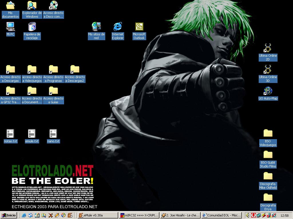 Bueno, pues el mío está más o menos organizao... XD. Y el fondito me encanta XD. Ains, que tiempos... :P. Bueno aquí os dejo el LinK... :P. (Gracias LinK por el LinKado... :P)